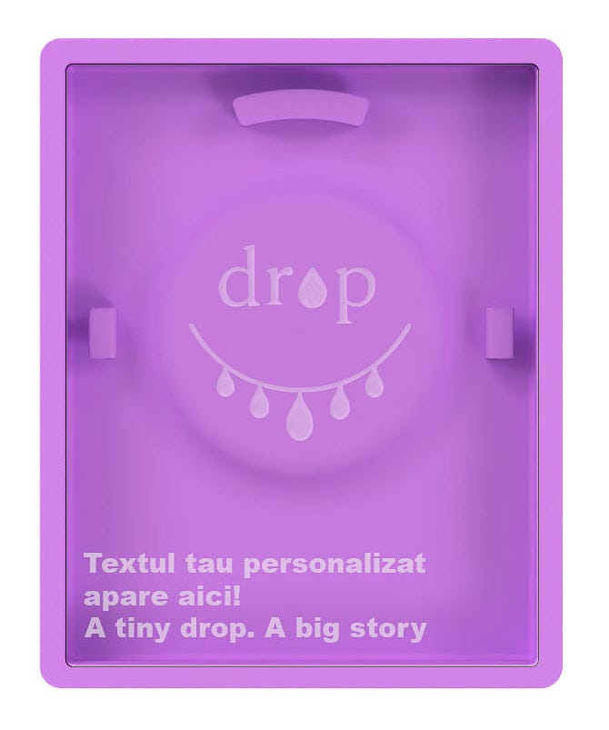 Pentru a păstra estetica DROP curată și echilibrată, am limitat textul personalizabil la 32 de caractere. Dacă mesajul dumneavoastră are nevoie de mai mult spațiu, vă rugăm să ne scrieți la adresa de e-mail afișată, iar noi vom încerca să găsim împreună cea mai bună soluție.